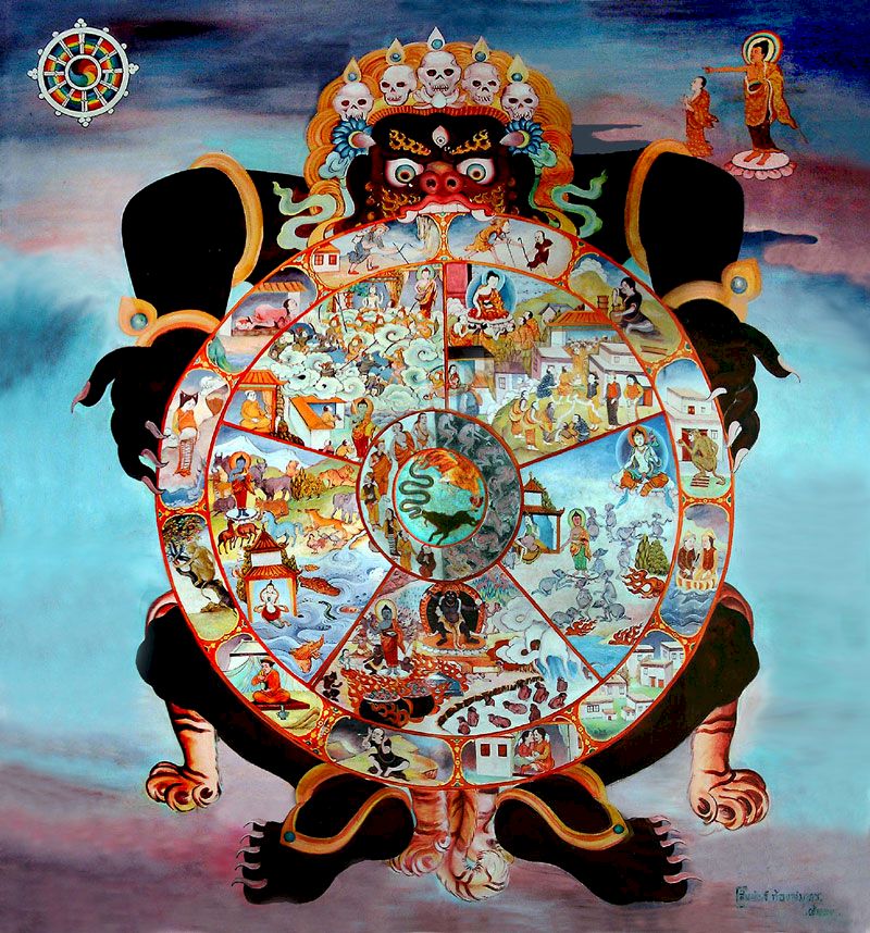 The ‘Dependent Origination’ is also known as The ‘Wheel Of Life’ or Bhavachakra. It shows how and why beings suffer due to their karma or willful actions.